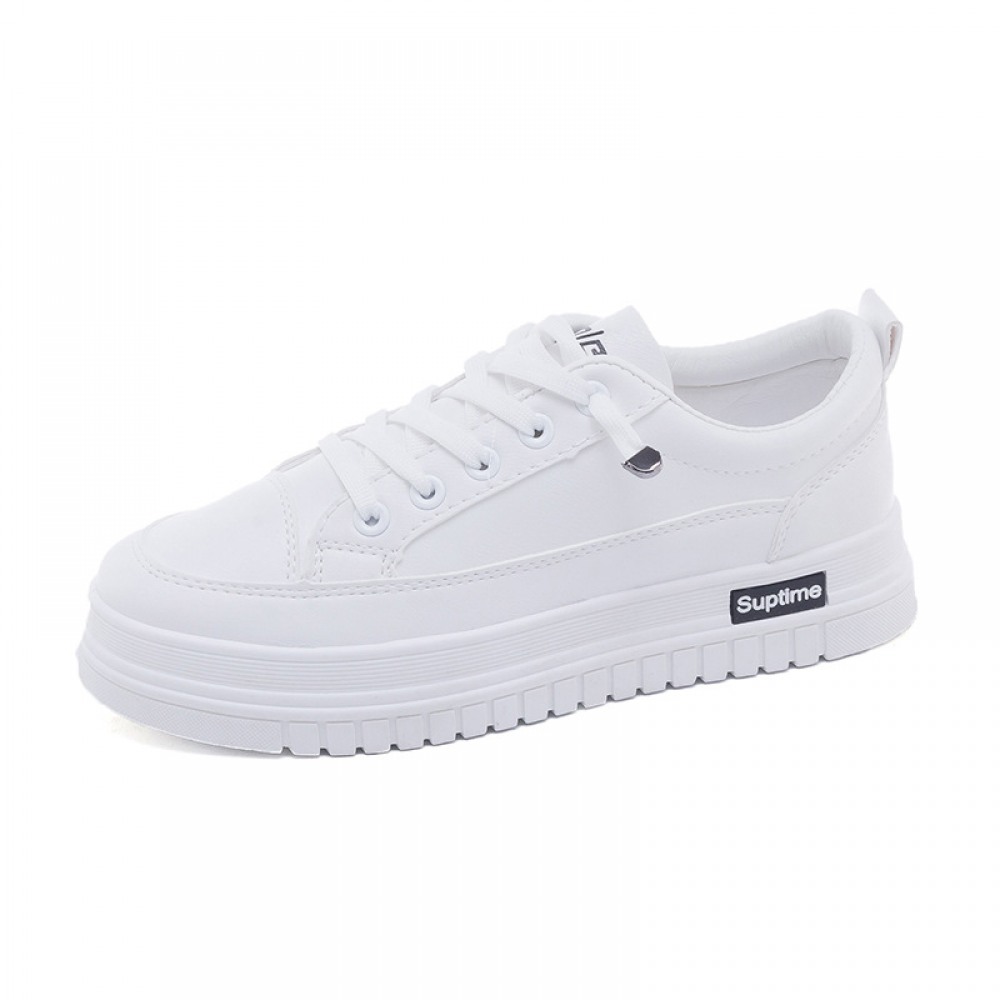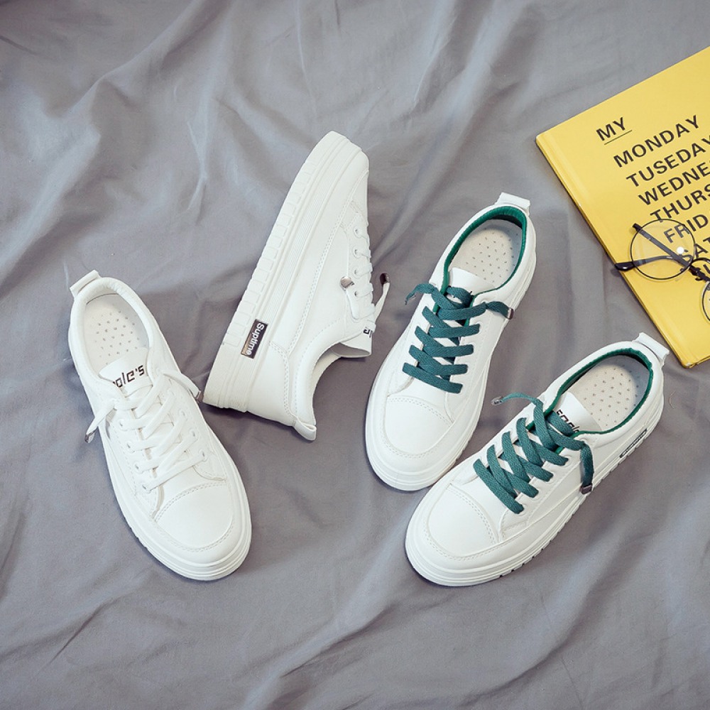 Basic White Flat Running Shoes Women's Lace-Up Platform Shoes