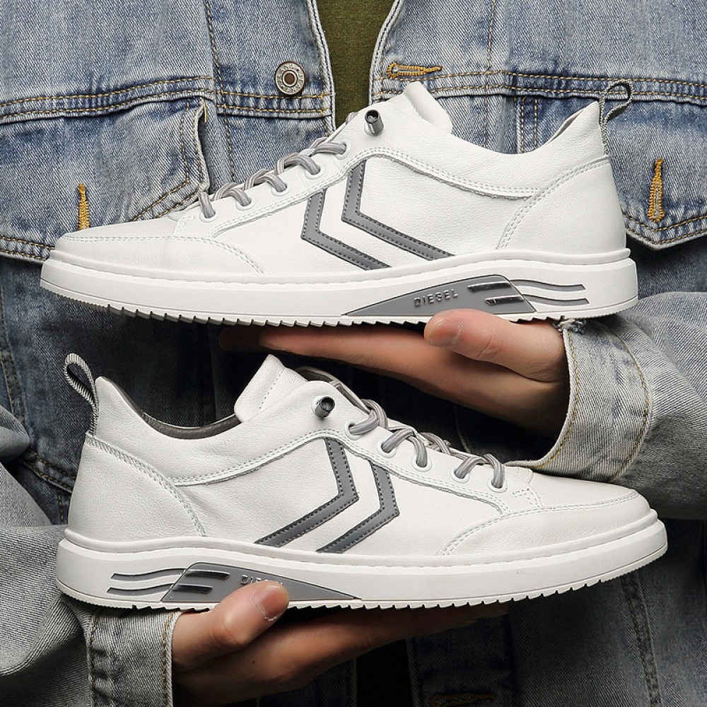 Summer New Fashion Men's Trendy White Sneakers Casual Leather Shoes