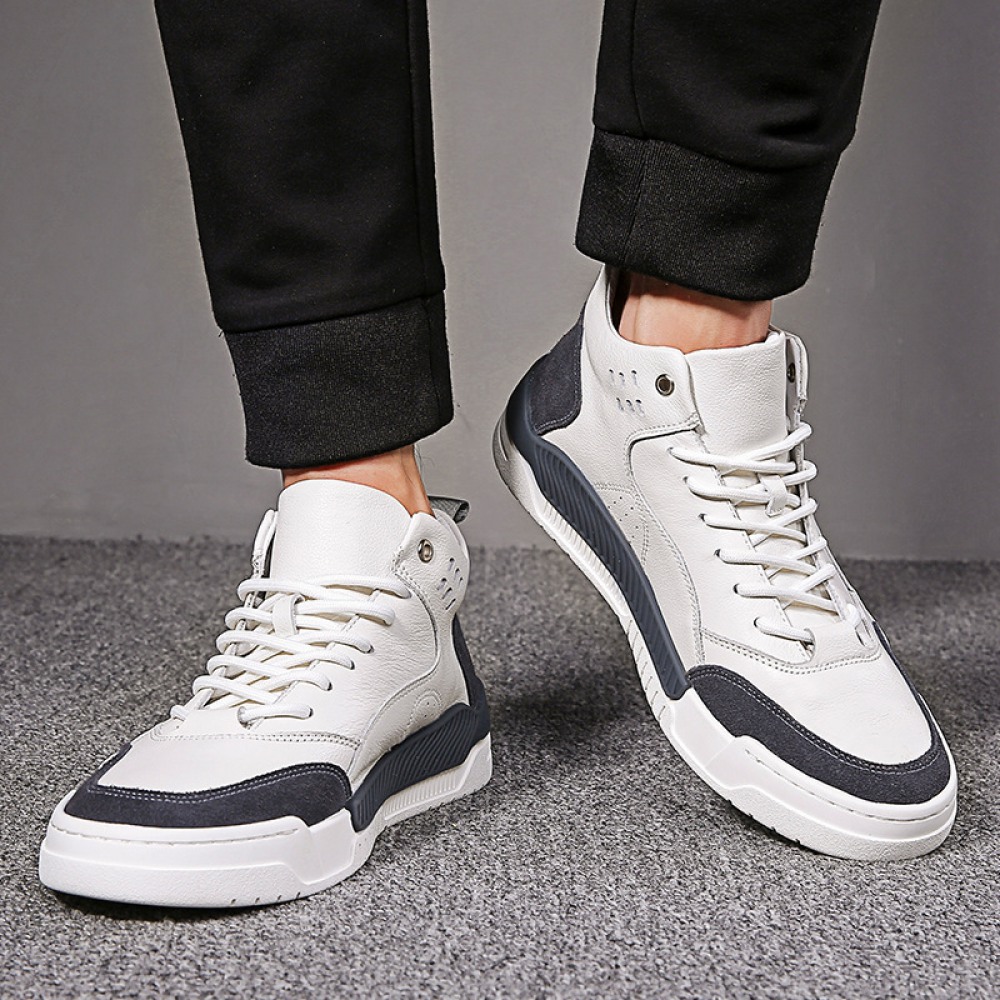 Autumn New White Men's Casual Thick-Soled Trend Sports Leather Shoes