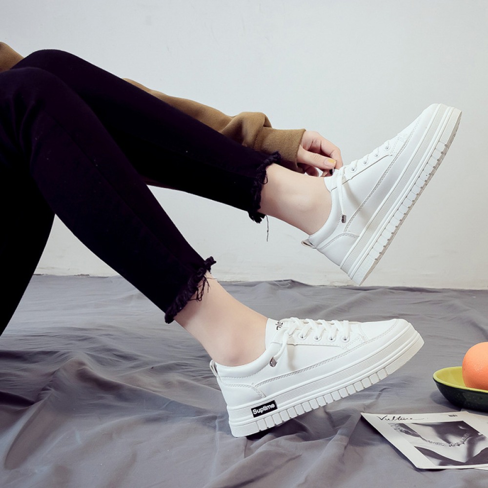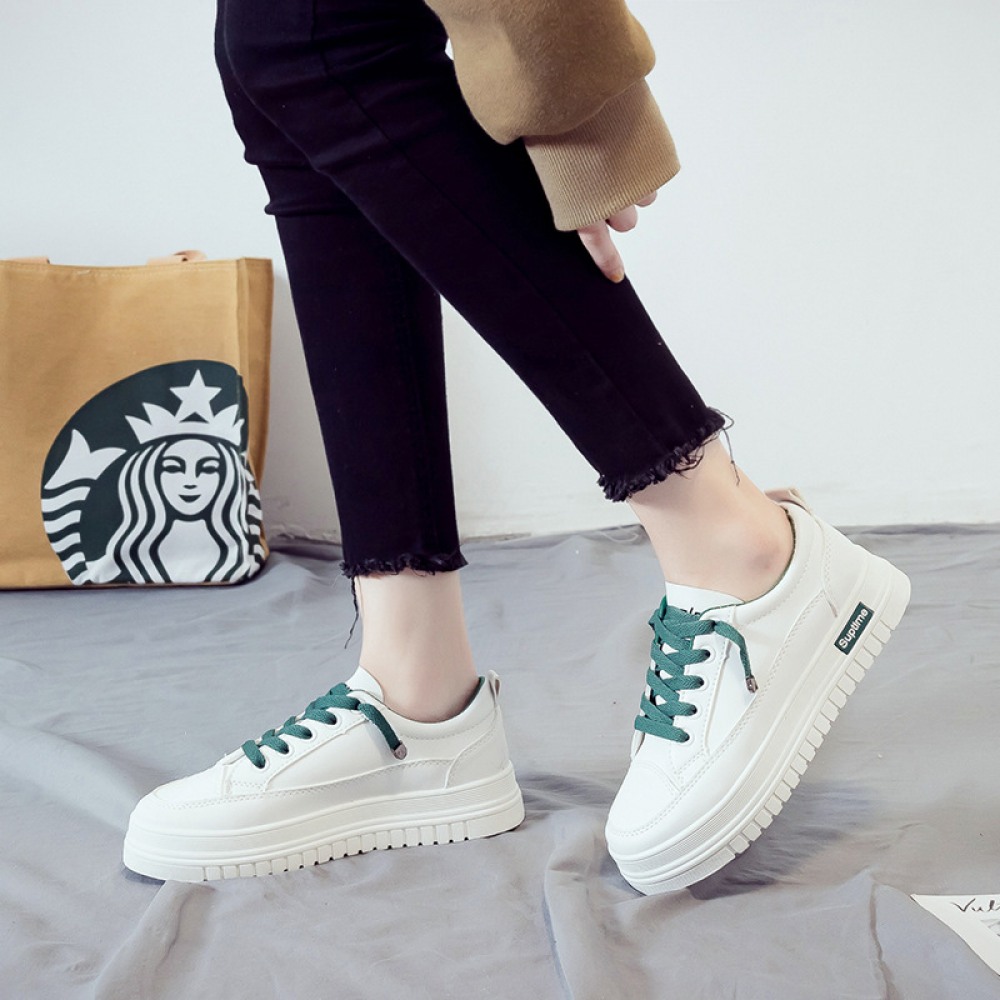 Basic White Flat Running Shoes Women's Lace-Up Platform Shoes